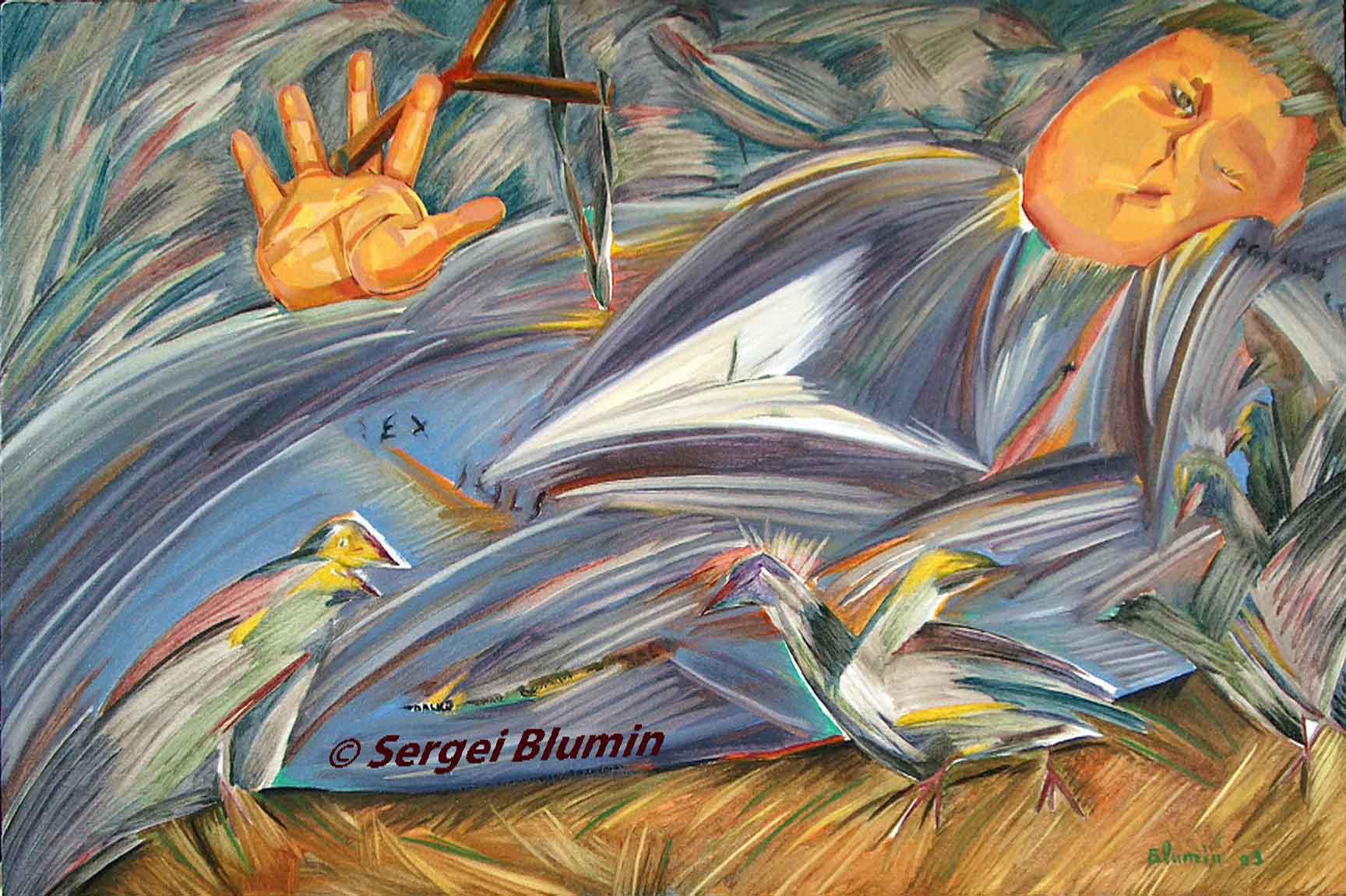 © S. Blumin, St. Francis Preaching to the Birds, signed, unframed author's print of oil painting, 2002