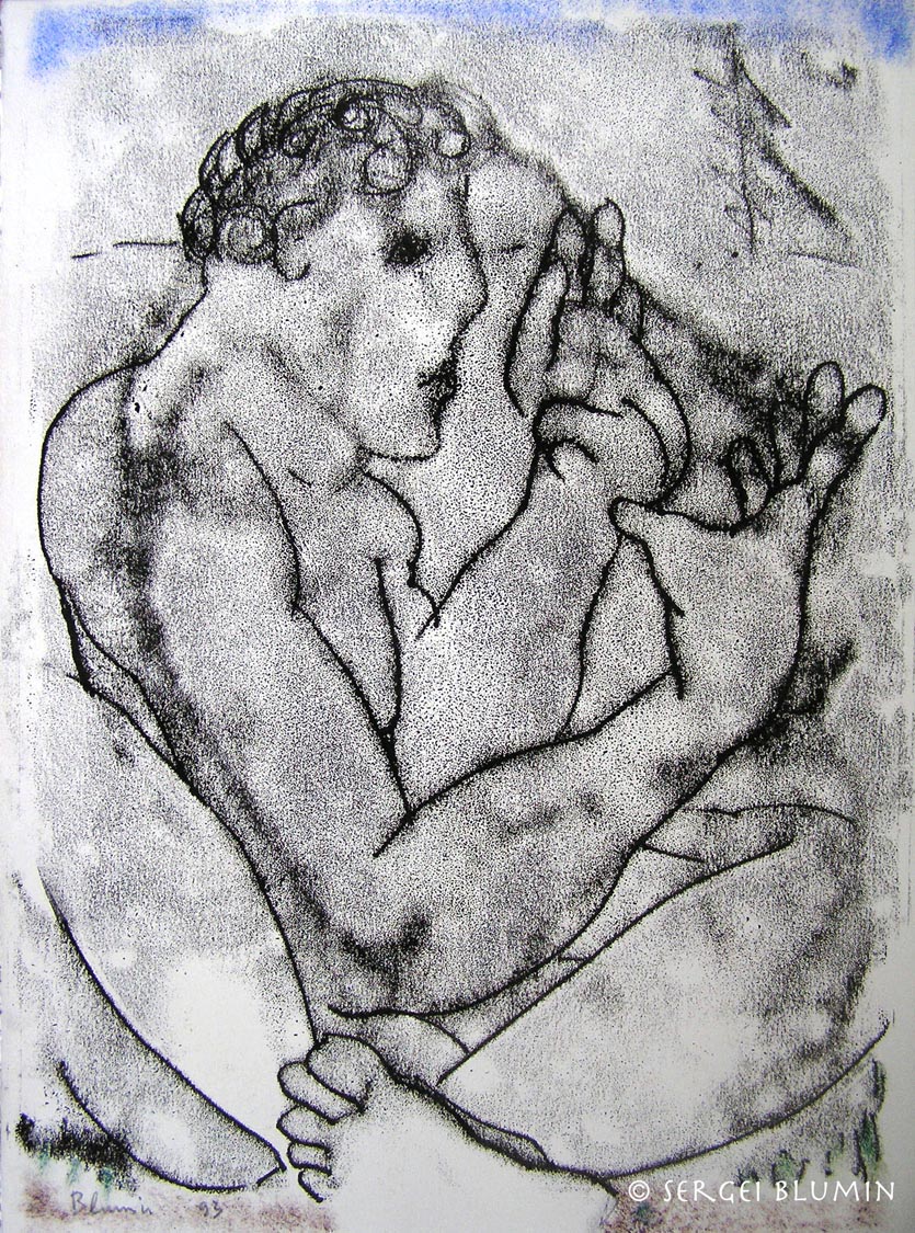 © S. Blumin, Man Holding a Void, signed, unframed author's print of oil tracing on paper, 1993