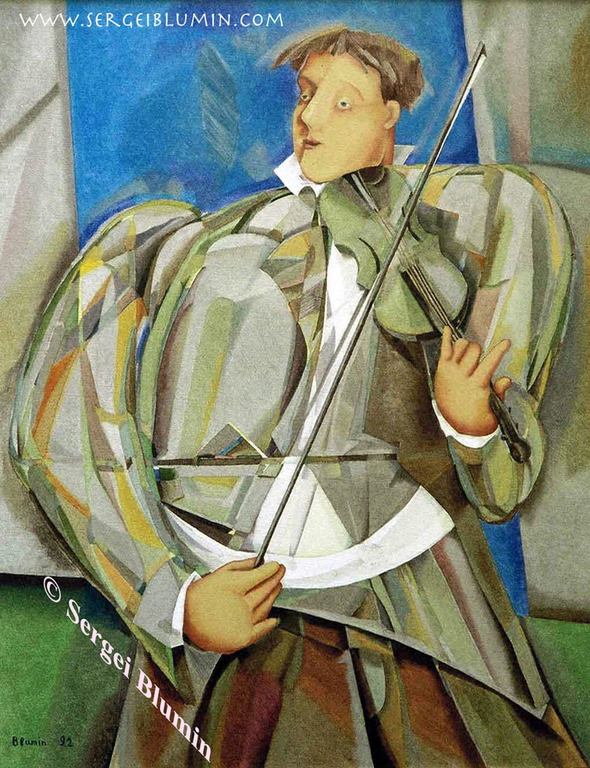 © S. Blumin, Playing Paganini, signed, unframed author's print of oil painting, 1990